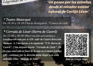 Jornada de Astroturismo con Javier Sánchez, inscripción previa en el ayuntamiento.